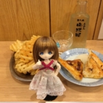 冷酒、鮭カマ焼き、大盛りニューポテトフライ