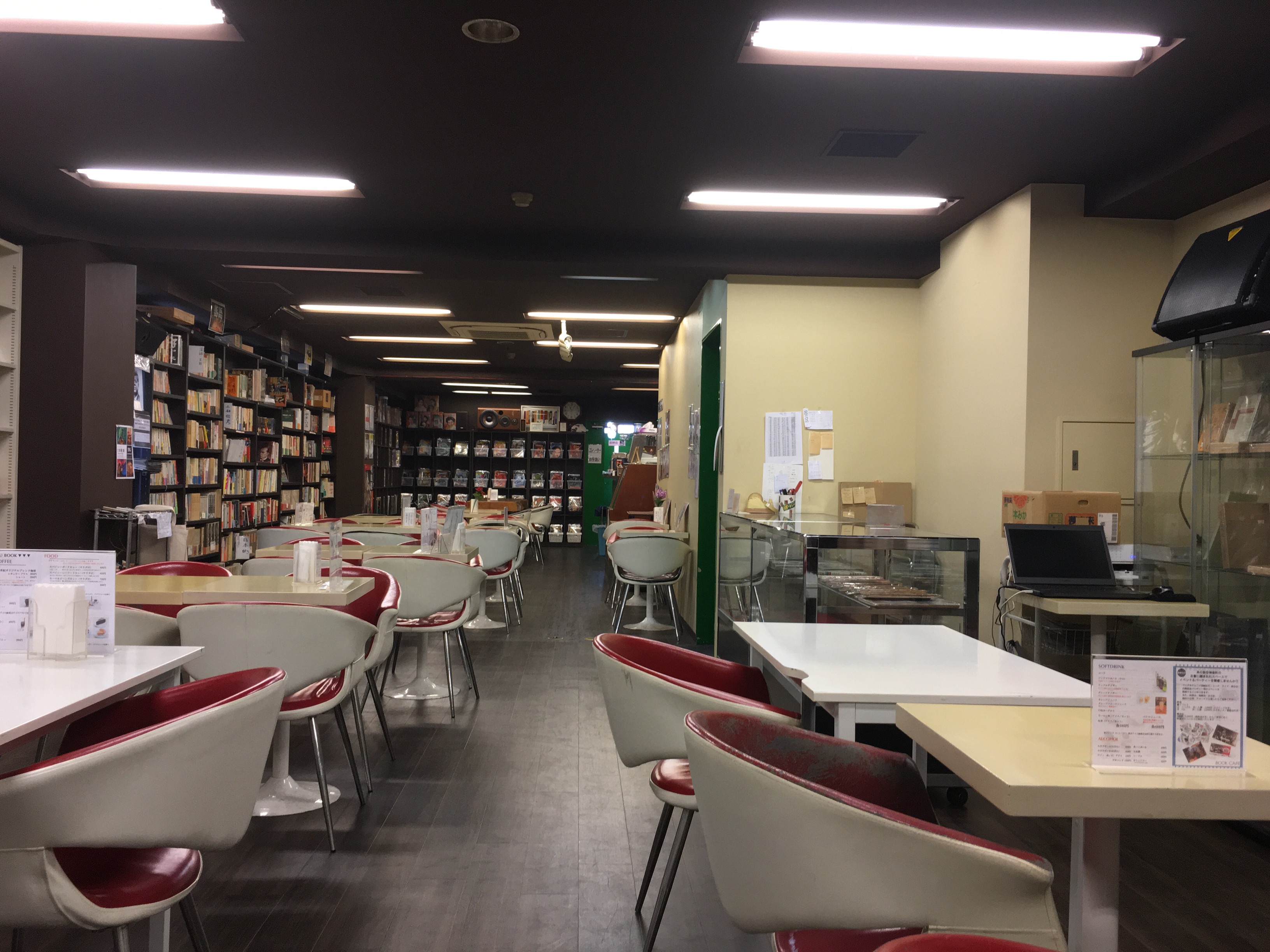 古本屋の書棚に囲まれた喫茶スペースといった感じのお店です。