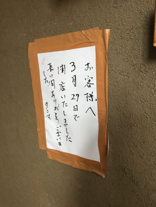 25年以上の付き合いだったとはいえ以前ブログに書いた通り、近年は来店の頻度が下がってたし今年に入ってからはまだ一度も行ってなかったしで、閉店についてどうこう言える立場ではないのですが。やはり少し悲しいです。