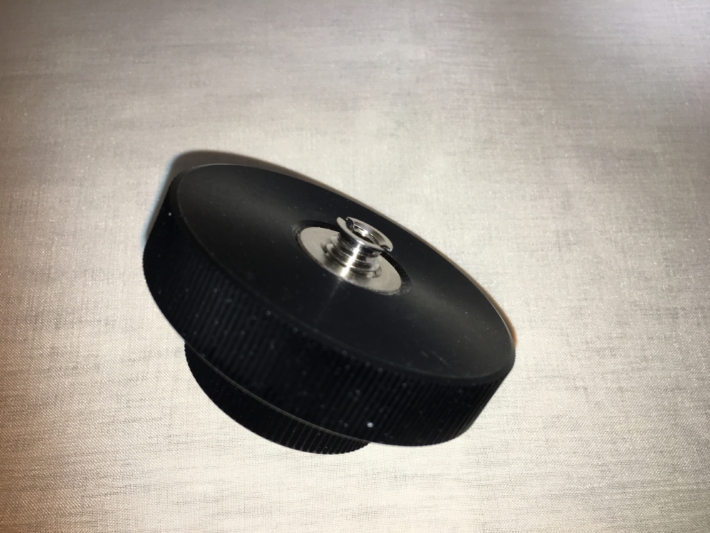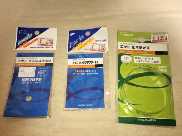 そこでこういったアダプタを用意しました。中央のとび出してる部分が1/4インチのメスネジです。