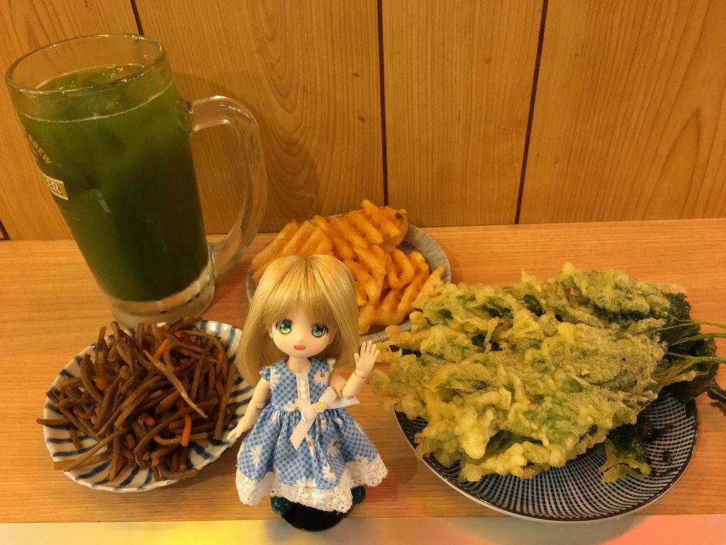 ニューポテトフライ(\150)、明日葉の天ぷら(\150)