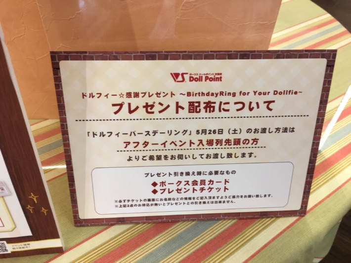 まず、期間は5/26~6/3。うん、これは比較的大きく書いてあったのですぐに気付きました。なので「次に来たときで良いや」と判断しました。次に、VS会員またはVIP会員のみ。まあ、sigeぬいぐるみの時と同じような感じですね。これもOKです。最後に、小さくですが「ボークスニュースvol.78同封の引換券を持ってきてね」と書いてあるんですよ。これが本当に小さく書いてあって「なんのトラップだよ!」と思いましたとさ。
