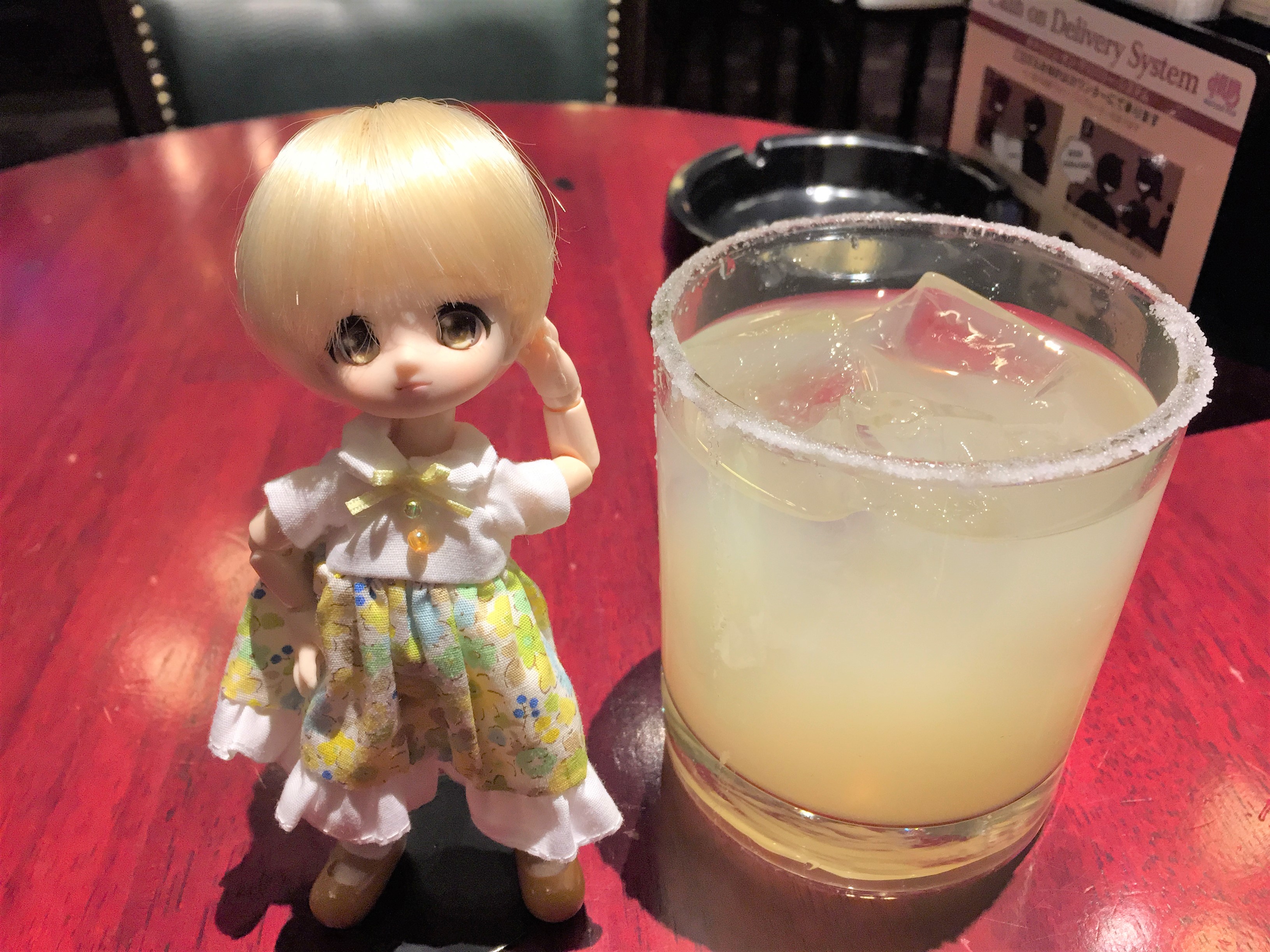 地下の店内で照明の具合も考慮して席を選んだつもりだったのですが、後で確認したら写真が暗すぎたので編集で明度をいっぱいまで上げてみました。立ち方は、このポーズなら全体をもっと斜めにして顔だけこちらに向けるべきでしたね。これは後から編集というわけにいかないので次から気を付けます。