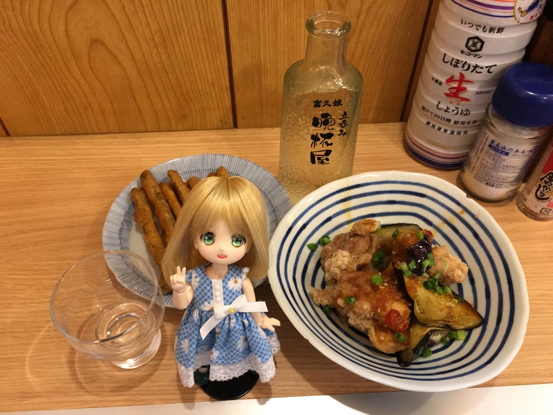冷酒(\370)、ごぼうの唐揚げ(\150)、