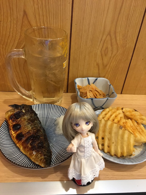 かちわりトンボブドー酒(\330)、ニューポテトフライ(\150)、