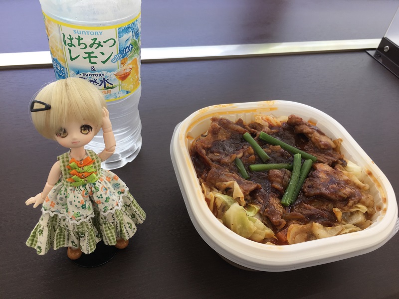 横浜ドールショウ行った際、会場直前のコンビニで食べた朝ご飯です。ふたを外して写真を撮って、食べ始めたところで二重底構造になってる事に気付きました。二重底にして下のご飯と上のホイコーローを分けてるんですね。コンビニ弁当はそんなに頻繁に食べないので素で気付きませんでした。面倒なのでホイコーローをご飯にかけた状態の写真は撮らずにそのまま食べちゃいました。美味しかったです。味も量もこれで500円なら上等です。本当に便利な時代になったものです。