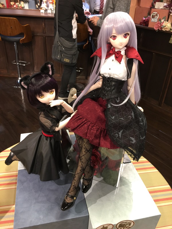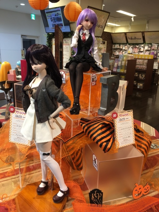 一番目立つ場所にあった中央ショーケースがなぜか2つとも撤去されていて、むき出しでドールが飾ってありました。この子達はハロウィン仕様ドレスって感じですかね。過去に売られたお洋服なのか10月の新作なのかは知りませんが。