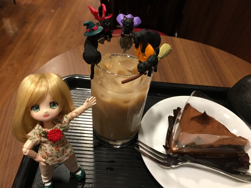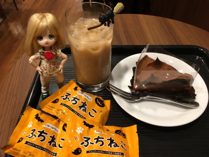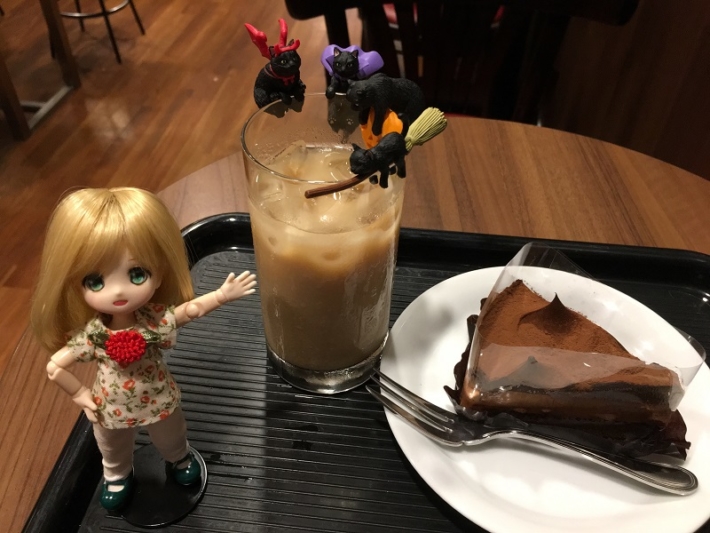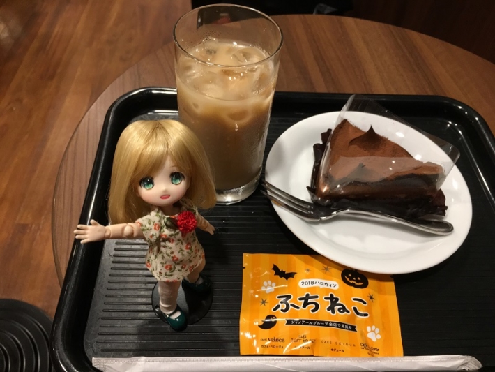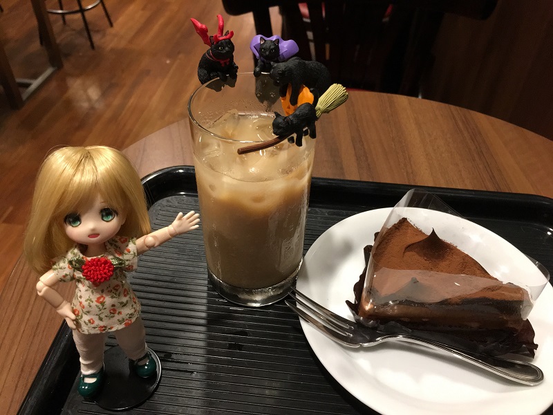 アイスカフェオーレ(\240)、生チョコケーキ(\350)