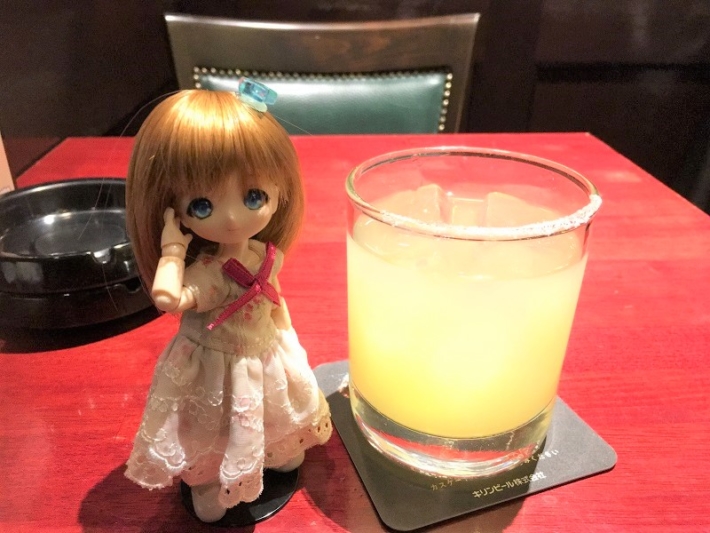 ドールの顔が影になっちゃったから明るさ補正かけたけど、写真全体の雰囲気は損なわれちゃったかな。実際はもう少し薄暗い感じの店内です。でも、ソルティドッグの黄色やドールの髪のハイライトを白飛びさせずに暗い箇所だけ修正できるとか、今どきのソフトは本当に良く出来てますね。
