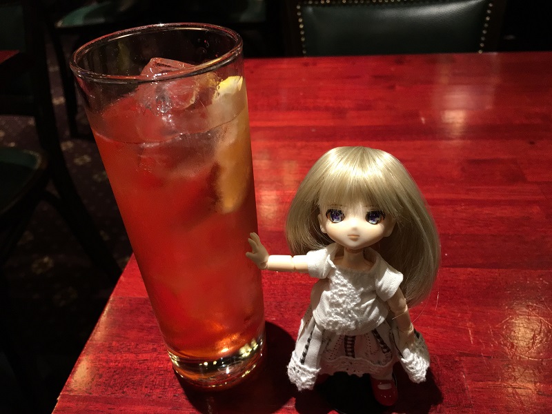 ピーチクーラーを飲んだはずなのですが、写真で見返しても先日のウォッカグランベリーと見分けが付きません。ドールの写りは良い感じなのですが飲み物の写りで失敗しちゃってますね。こんな感じで透明感のあるピンク色を撮りたかったのですが。撮影角度・店内の光量・テーブルの色等考えると難しいのかな。