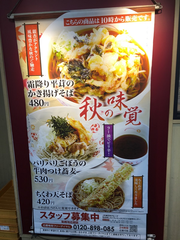 2018/11/04 JR西日暮里駅構内 生蕎麦いろり庵きらく
