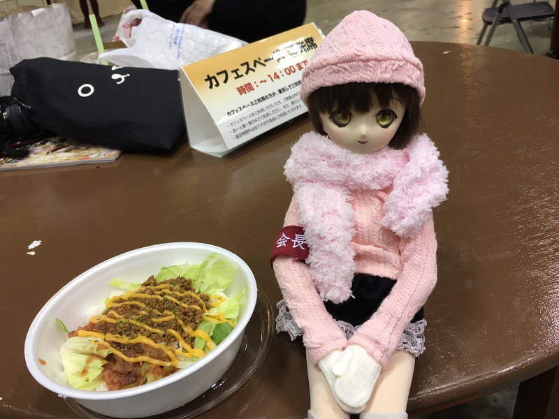 あと、ドールイベントや中規模以下の同人誌即売会でご飯屋さん入れるなら、やはりカフェスペースというかご飯食べるテーブルは必須ですね。こちらとしても写真撮り易くてありがたいし。