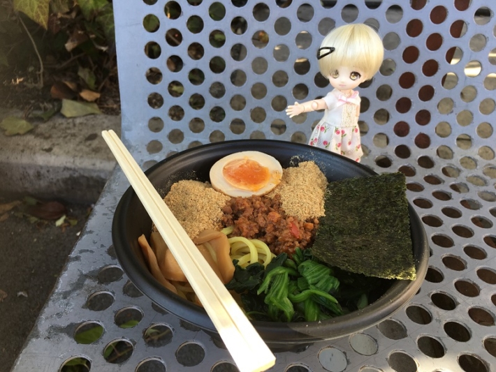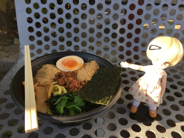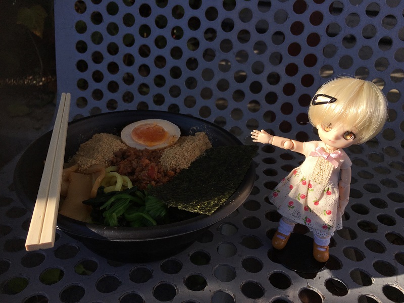 ドールにだけ日が当たってる状態で台湾まぜそばに明るさを合わせるとこんな感じでドールが白飛びするし、
