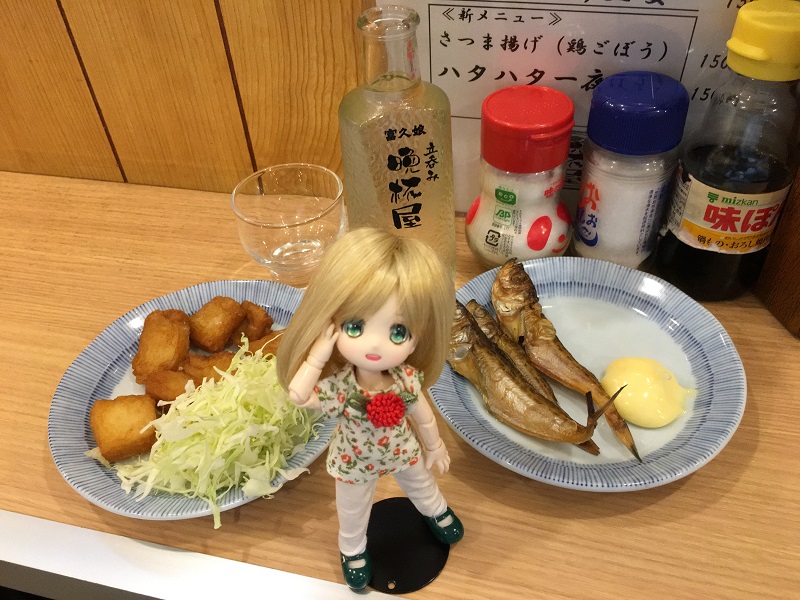 冷酒(\370)、イカの唐揚げ(\150)、ハタハタ一夜干し(\150)