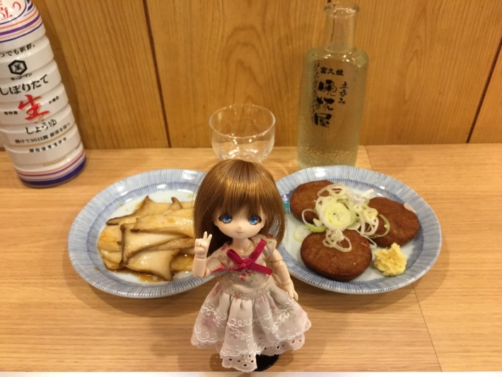 冷酒(\370)、さつま揚げ(鶏ごぼう)(\150)、エリンギぽん酢(\130)