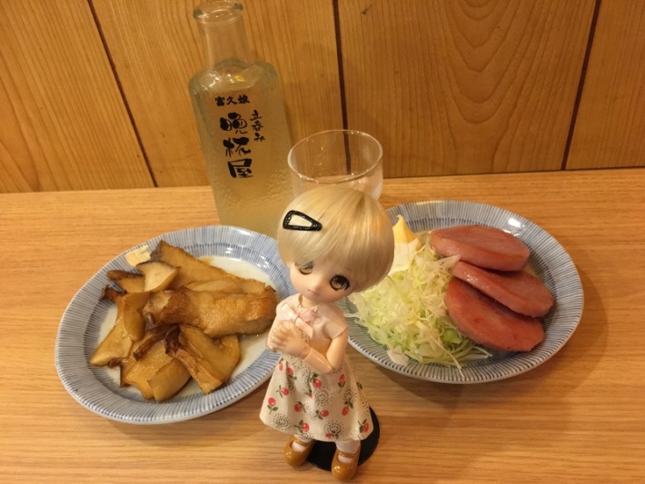 冷酒(\370)、エリンギぽん酢(\130)、はむハムハム(\180)