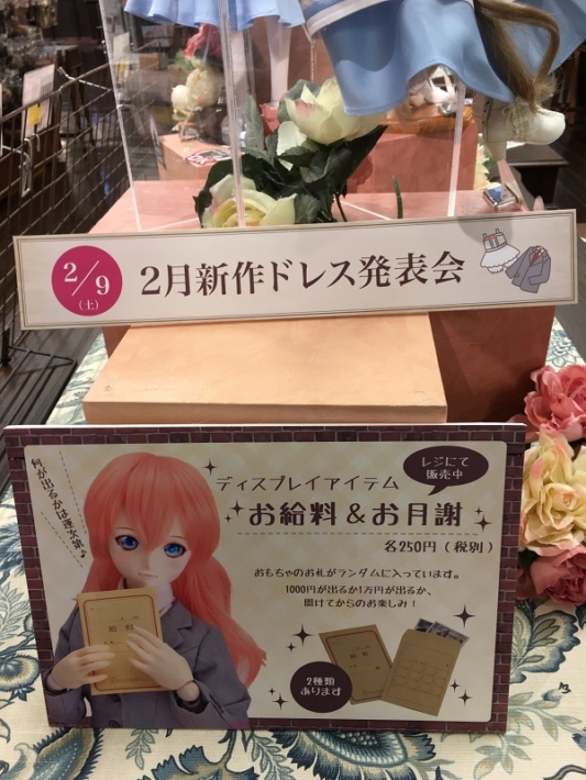 水曜の夜に見たのは2月新作ドレス発表会の準備だったようです。しかし、このディスプレイアイテムは随分とレトロですね。お月謝袋はともかく、お給料袋とか80年代中頃には(現金払いが銀行振り込みに置き換わった為)殆ど死滅していたはずですよ。