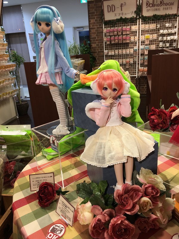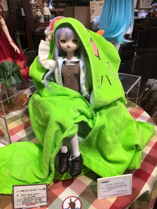 水曜日に見た奥の方のテーブルの小さい子2体が3体に増えてました。更に1体はぴにゃこら太の皮をかぶる仕様になってました。楓さん(DD)が被ってた時のぴったりサイズも良かったけど、MDDが被って明らかに大きすぎな感じになるのもまた良いものです。