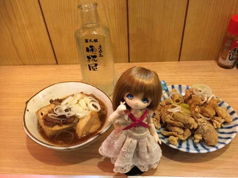 冷酒(\370)、肉豆腐(\180)、鶏皮ぽん酢(\150)