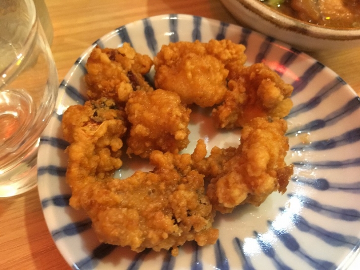 タコの唐揚げだけなかなか出てこなかったので先に写真撮って飲み始めちゃいました。なのでタコだけ別撮りの写真です。