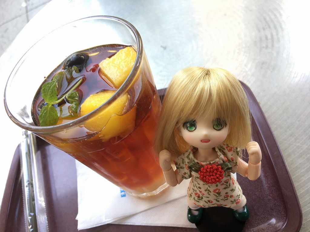 フルーツの切ったのが色々入った冷たい紅茶です。桃のピューレ入りソースというのも入ってたそうですが、そっちは良く分かりませんでした。甘み要素が基本フルーツ由来なので甘すぎずベタつかず、さっぱりした味わいでした。金土日と続いた暑さで気まぐれを起こして試してみた新メニューですが、なかなかのヒットでした。