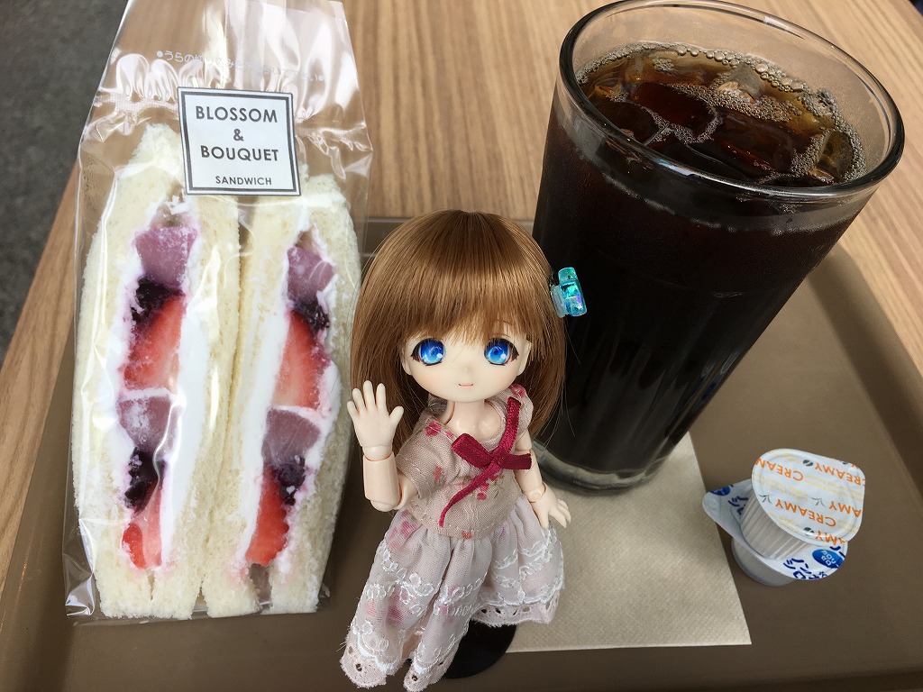 フランボワーズソースの苺ミックスサンドイッチ(\350)、アイスコーヒー(\240)