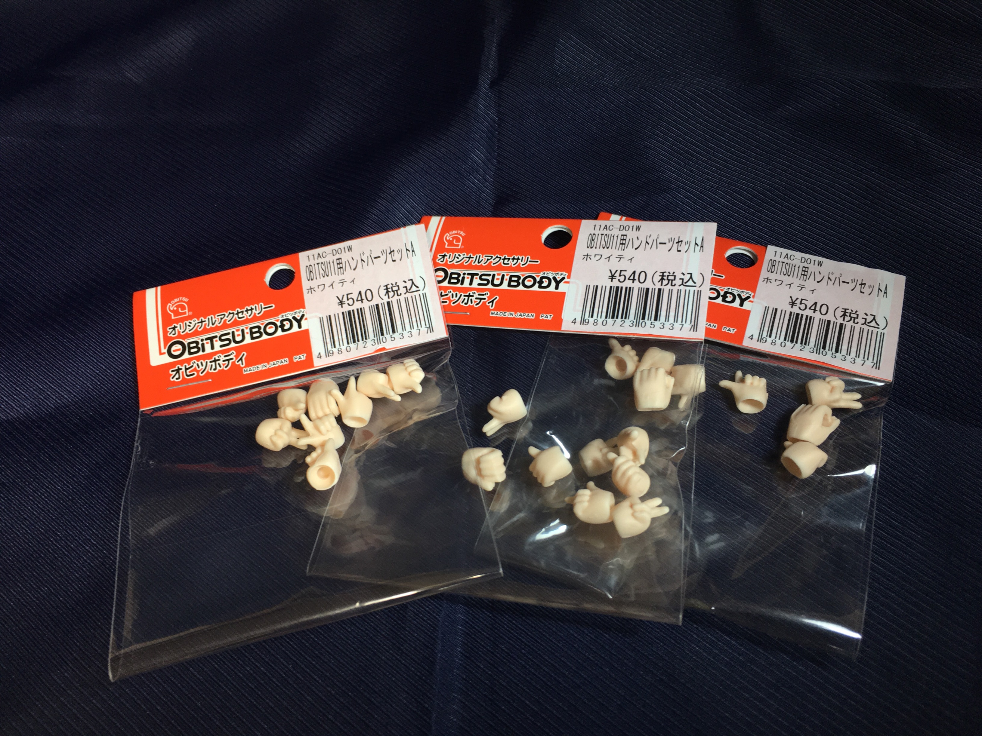 ワンフェス戦利品紹介の続きです。株式会社オビツ製作所のブース(6-01-01)へ行ったところ案の定、通販限定商品のハンドパーツセットが展示売りされてました。もちろん速攻で購入しました。