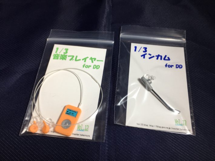 Vol.12さんの1/3音楽プレイヤー for DDと1/3インカム for DD。こういった小物はMDDでもDDのが使えるから楽ですね。一応、レナさんに使われてるヘッド(DDH-01)に装備可能なことはディーラーさんに確認済みです。