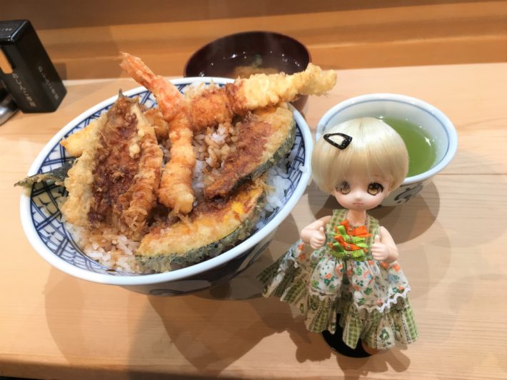 濃い目のしょっぱいタレがご飯までしっかりかかってます。てんやの薄くて甘いタレに慣れてると驚くかもしれません。二丁目天丼店のタレもしょっぱい方なのですが、ここまで濃くはなってませんし、上からかけるのではなく天ぷらをタレにくぐらせてからご飯にのせる作り方でした。