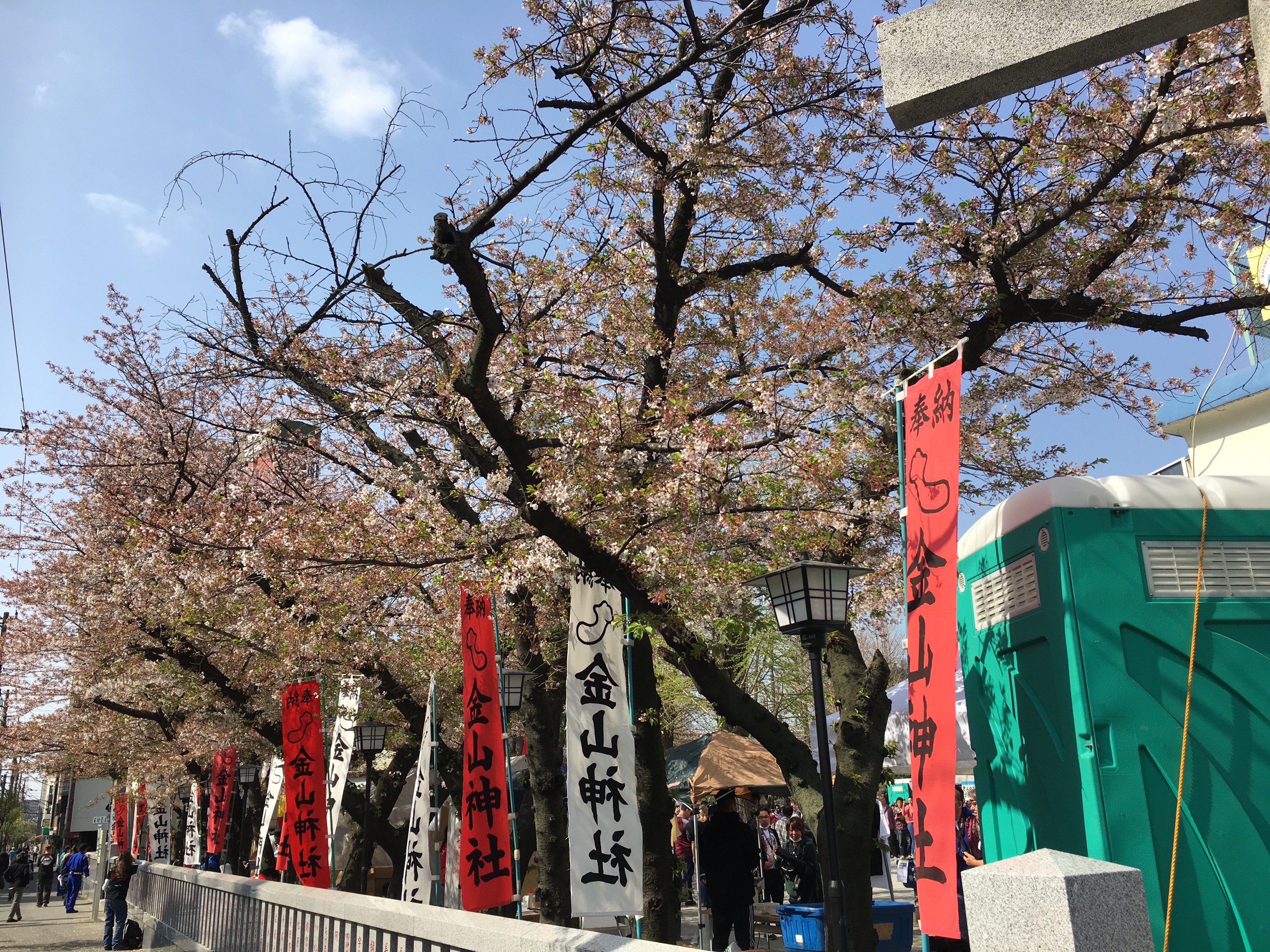 4月の第1日曜日はその年のカレンダーによって4/1から4/7まで幅があり、且つその年の気候も当日の天気もまちまちです。しかし、こんなに桜が散った状態でのかなまら祭りは自分は初めてでした。例年だとちょうど満開か散り始めの時期に当たることが多いです。
