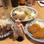灘の銘酒 白鶴(\205)、神田旨カツ(ソース・和風)(\214)、マカロニサラダ(\238)、揚げたて(\238)